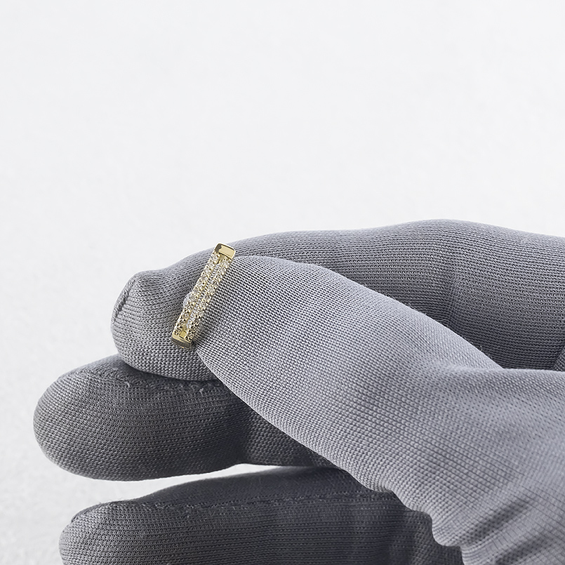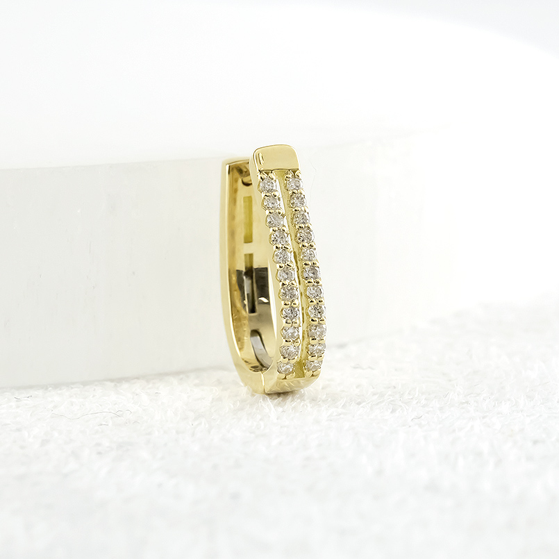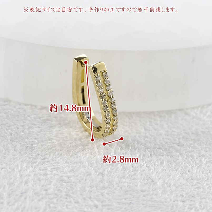 小粒のダイヤモンドが2列に並ぶ上品な印象のフープピアス