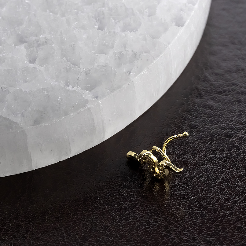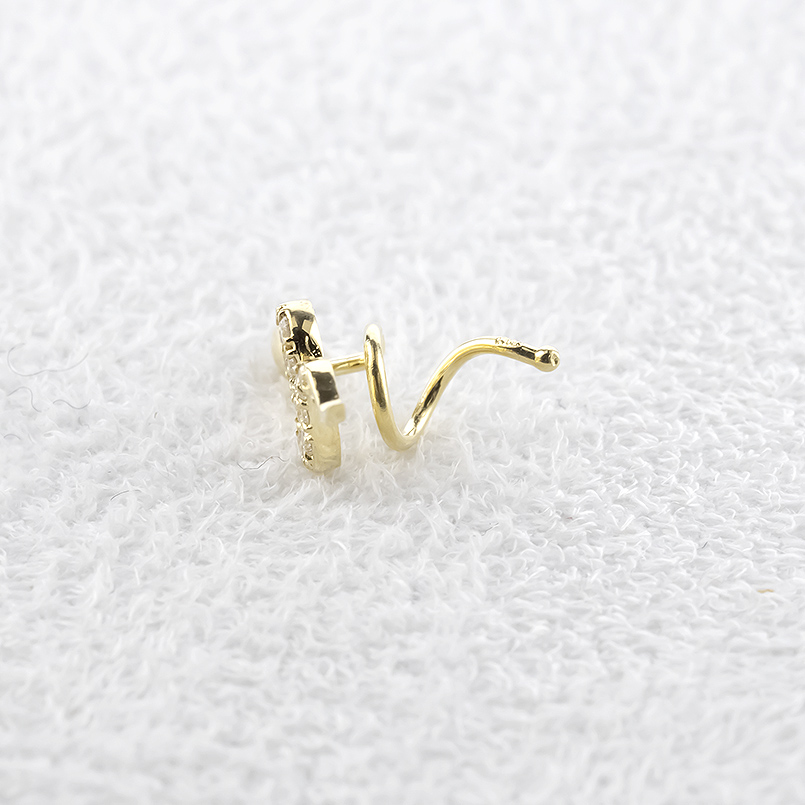 スネークにダイヤモンドを散りばめて小さくても高級感のあるキャッチのいらないピアス