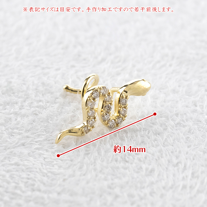 7. ヘビ 蛇 18金 ピアス つけっぱなし 片耳 ダイヤモンド キャッチのいらないピアス K18 へび 18k ゴールド スネーク シンプル お守り 巳年 干支 イエローゴールドK18 キャッチナッシャー 人気 普段 使い250326tp400yu SWAA268