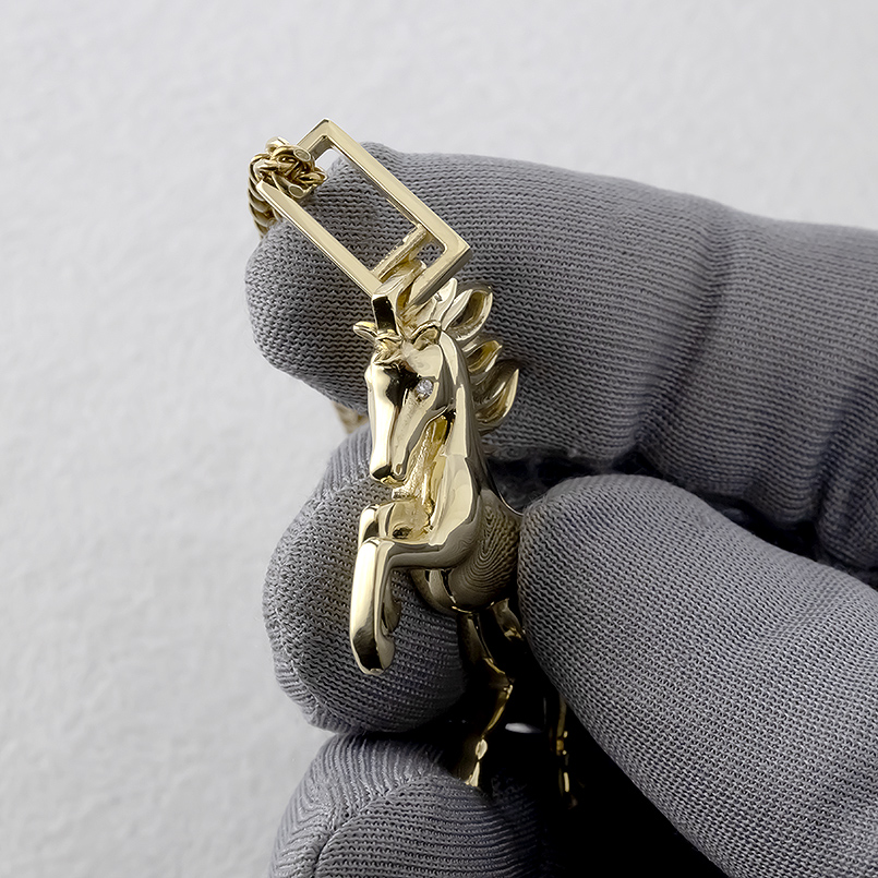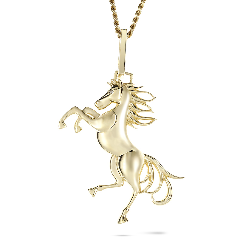 鬣(たてがみ)をなびかせ、躍動感あふれる跳ね馬を立体的に細部まで精巧に再現したペンダントトップ