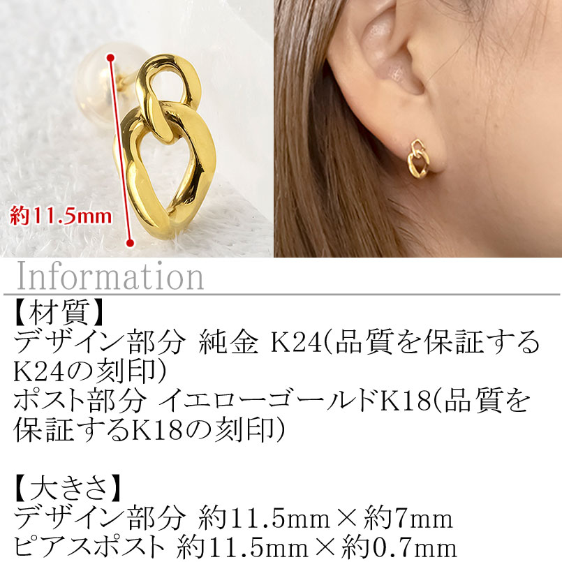 24金 純金 ピアス 喜平 ゴールド 片耳 24k 鎖 チェーン K24 k24 スタッドピアス 金具18金 k18 ジュエリー シンプル 石なし 誕生日 プレゼント 記念日 人気 普段 使い おしゃれ250207mro200 SWAA274