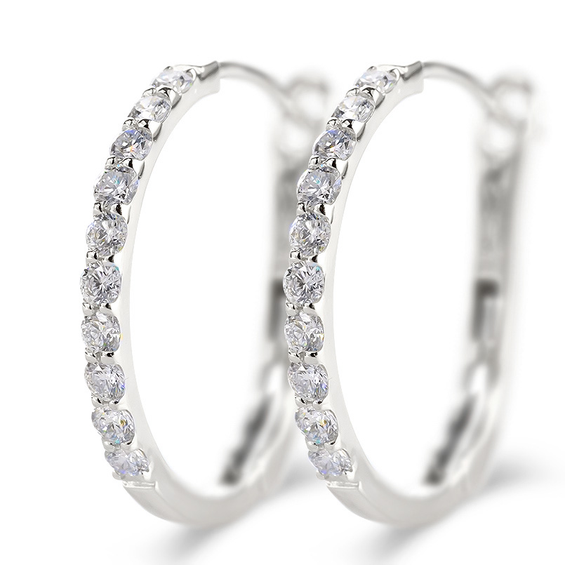 輝くダイヤモンドが美しく連なる、洗練されたフープピアス