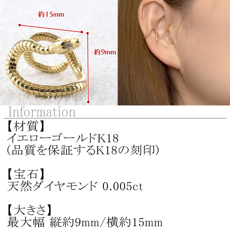 ヘビ 蛇 18金 イヤーカフ イヤリング 片耳 ダイヤモンド 右耳用 イヤカフ 18k スネーク ゴールド ダイヤ K18 イエローゴールドk18 巳年 干支 お守り シンプル ジュエリー 普段 使い250226tp200yu SWAA285