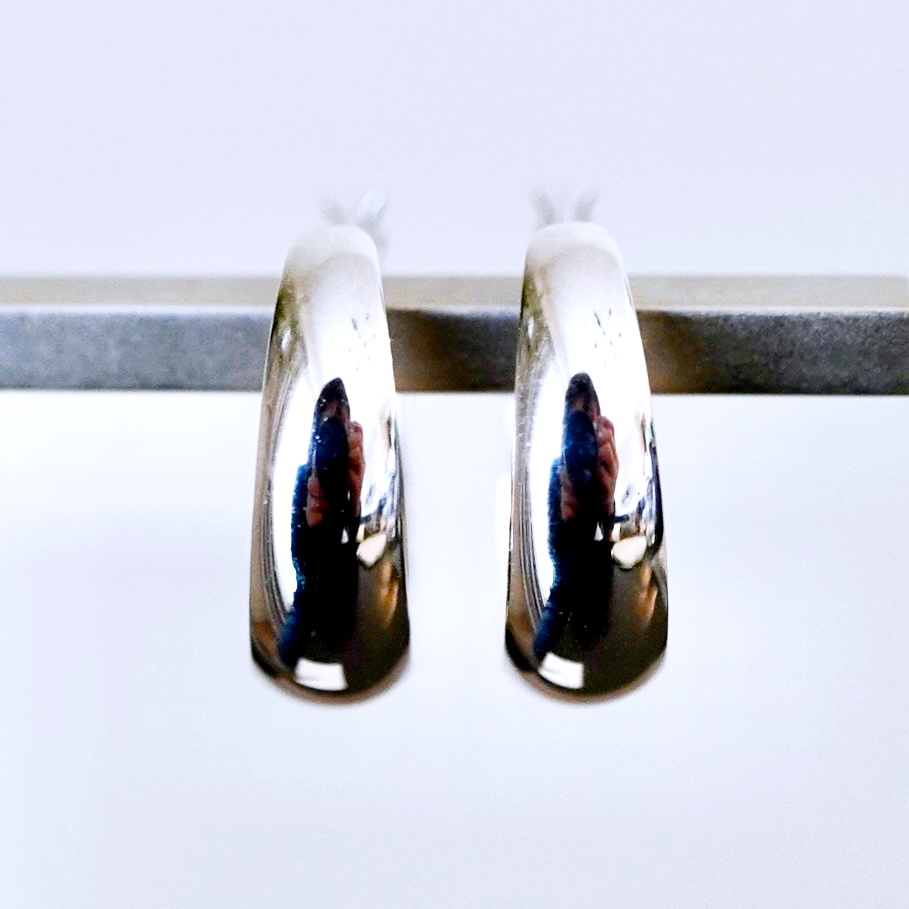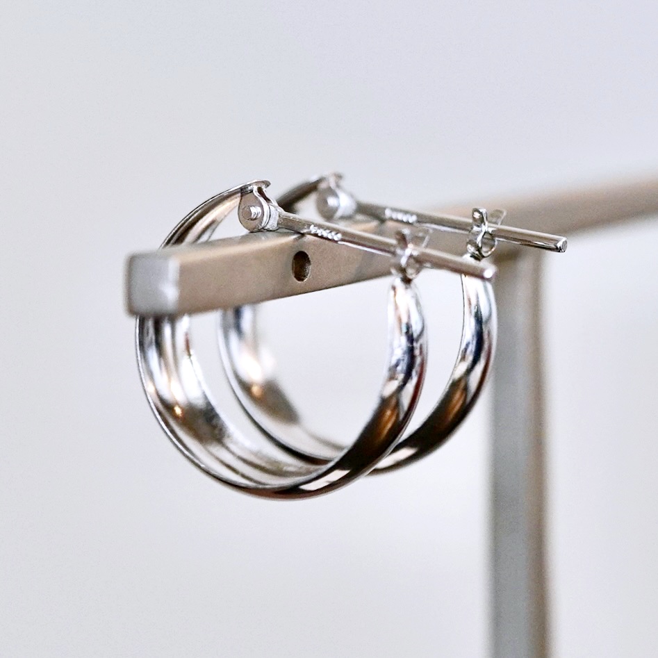 ツルンとした甲丸のグラデーションラインが素敵なPt900のピアスです。