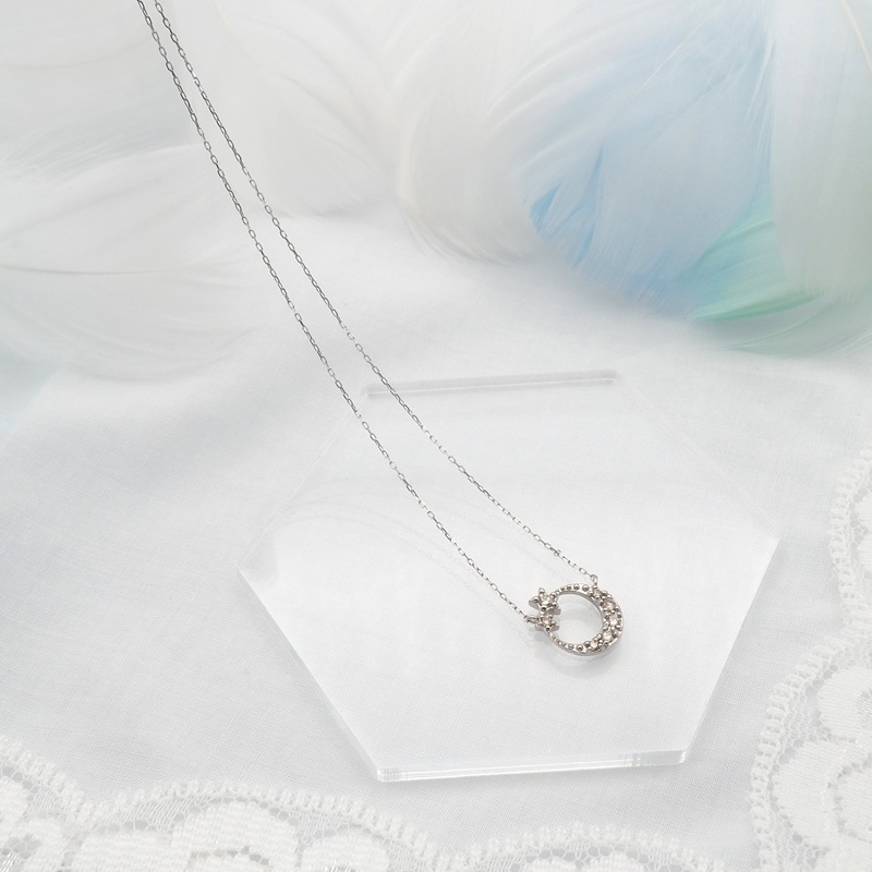 厳選された7石のダイヤモンドをトータル0.1ct使用した三日月のネックレス。