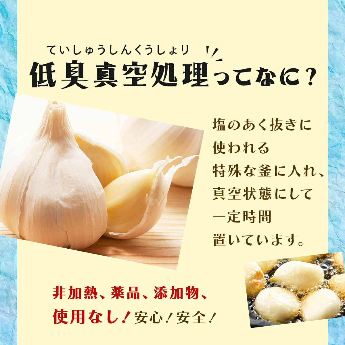 青森県産にんにくを使用し、食後の臭いを抑える低臭真空処理を行っております。