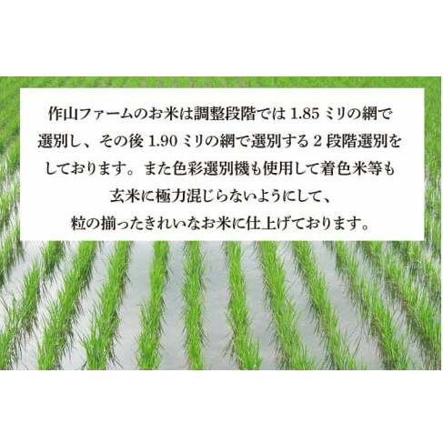 作山ファームのお米は調整段階では1.85ミリの網で選別し、その後1.90ミリの網で選別する2段階選別をしております。また色彩選別機も使用して着色米等も玄米に極力混じらないようにして、粒の揃ったきれいなお米に仕上げております。