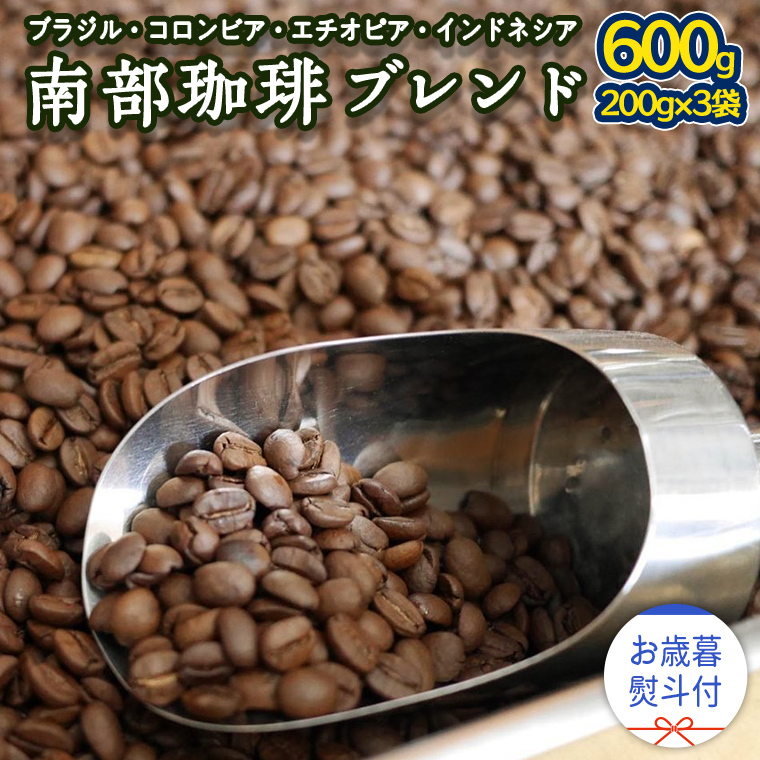 【 お歳暮 熨斗付 】 南部珈琲 ブレンド 200g × 3袋 ギフトセット コーヒー豆 600g コーヒー ブレンド 焙煎 人気 新鮮 贈り物 贈答 プレゼント