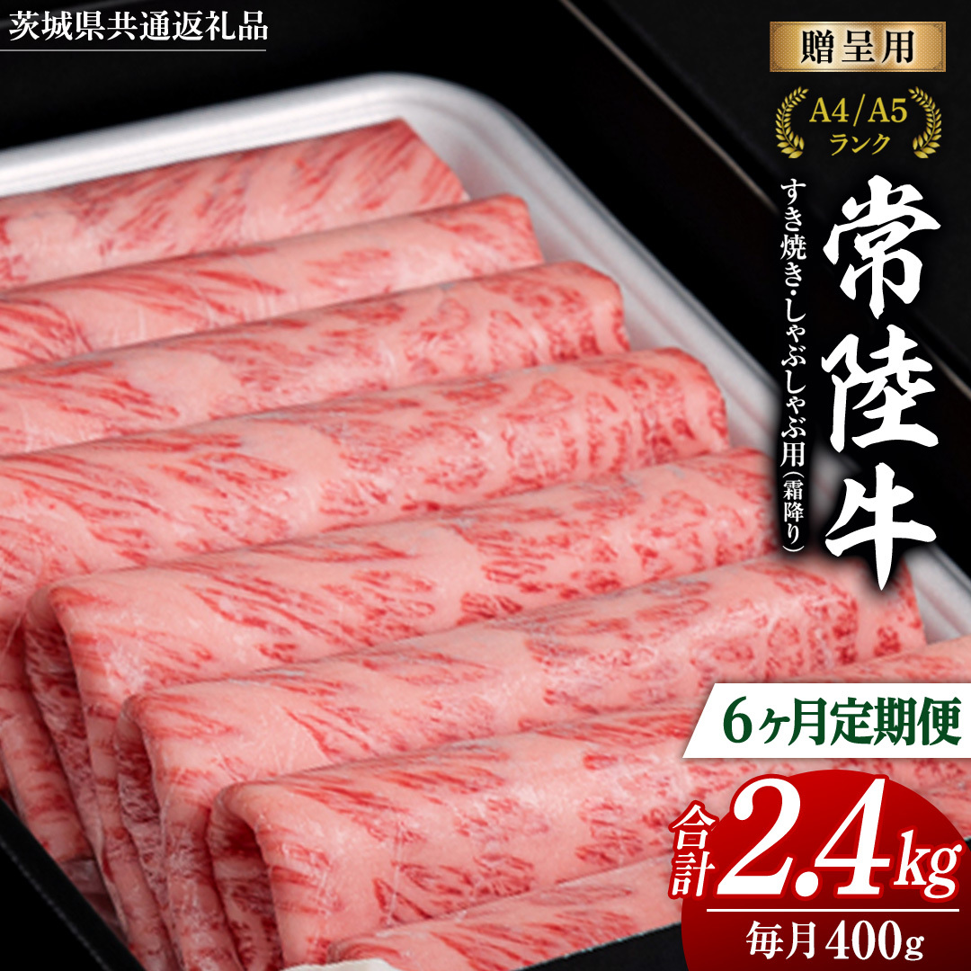 【 6ヶ月 定期便 】『常陸牛』すき焼き しゃぶしゃぶ用 ( 霜降 ) 400g (茨城県共通返礼品) 国産 牛肉 肉 お肉 すき焼き A4ランク A5ランク ブランド牛 贈答 化粧箱 黒毛和牛 和牛 国産黒毛和牛 国産牛 定期便 頒布会 小分け