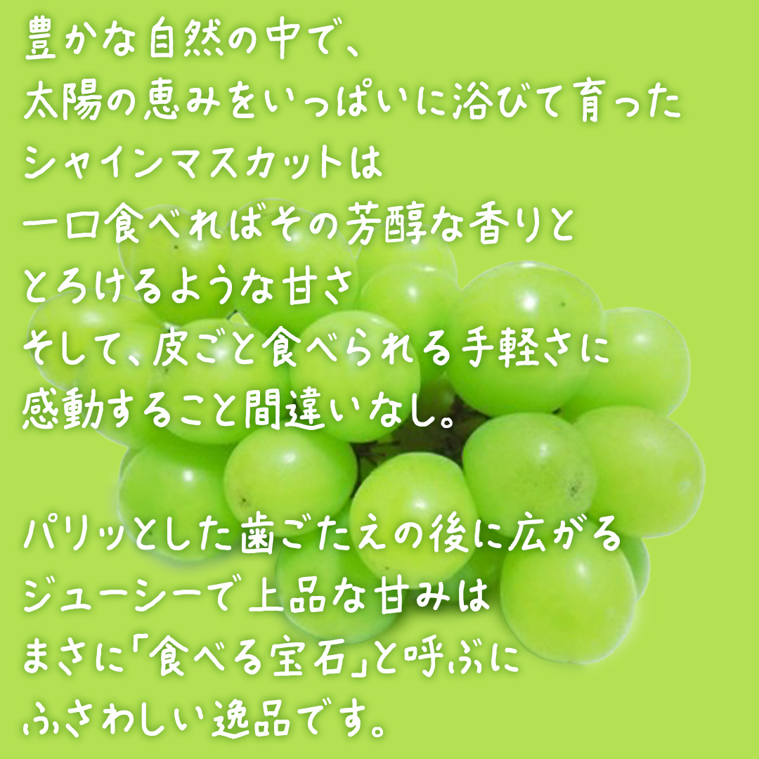 この「シャインマスカットの宝石箱」はご家族やご友人への贈り物はもちろん、日頃頑張っている自分へのご褒美にも最適。