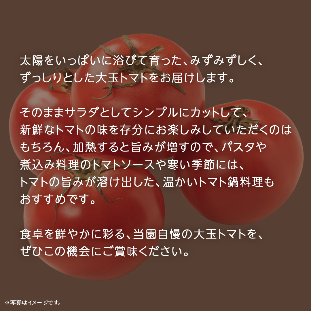 太陽をいっぱいに浴びて育った、みずみずしく、ずっしりとした大玉トマトをお届けします。