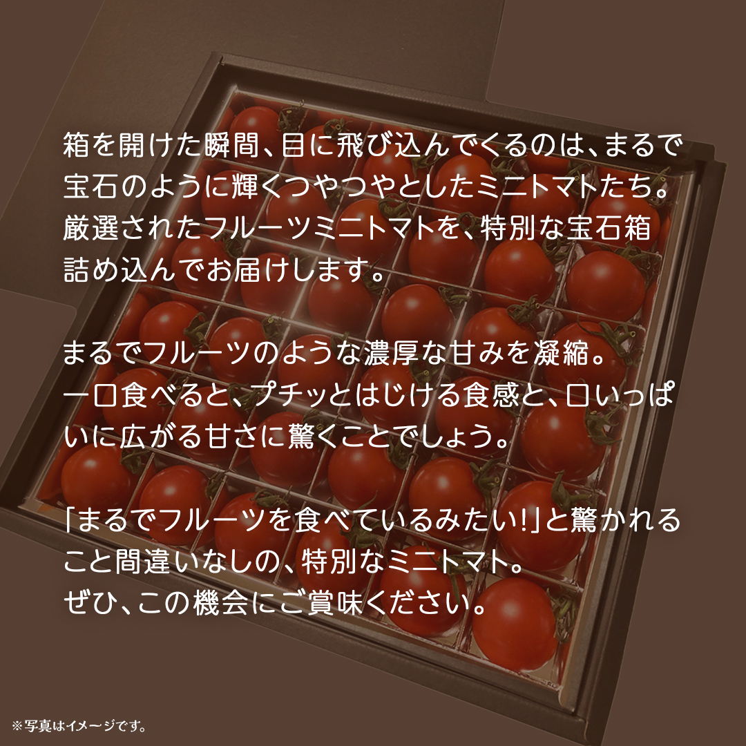 厳選されたフルーツミニトマトを、特別な宝石箱詰め込んでお届けします。