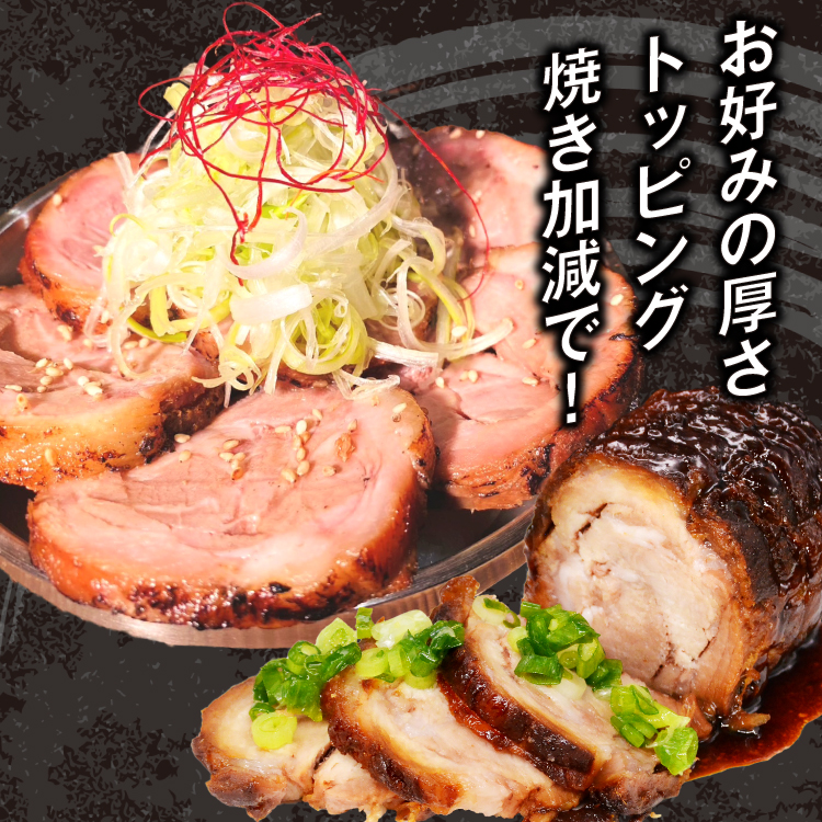 自慢のチャーシューたれで味付けし、手間ひまかけて作り上げた肩ロースの焼豚です。