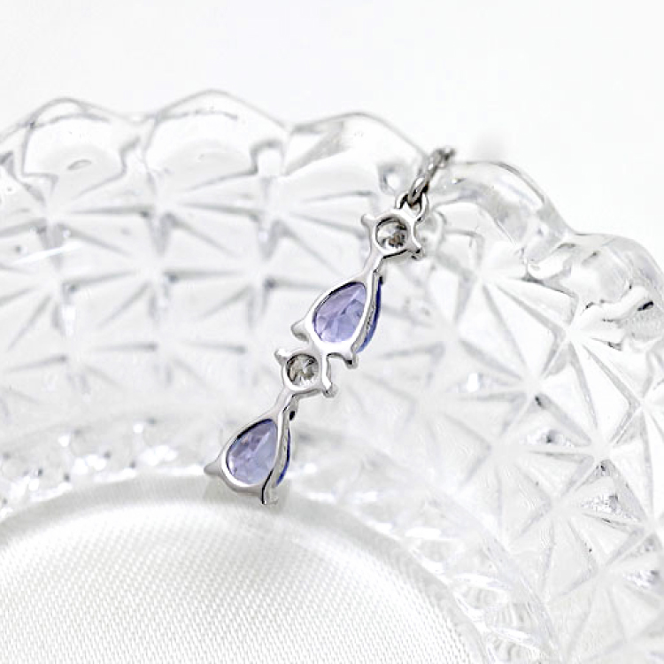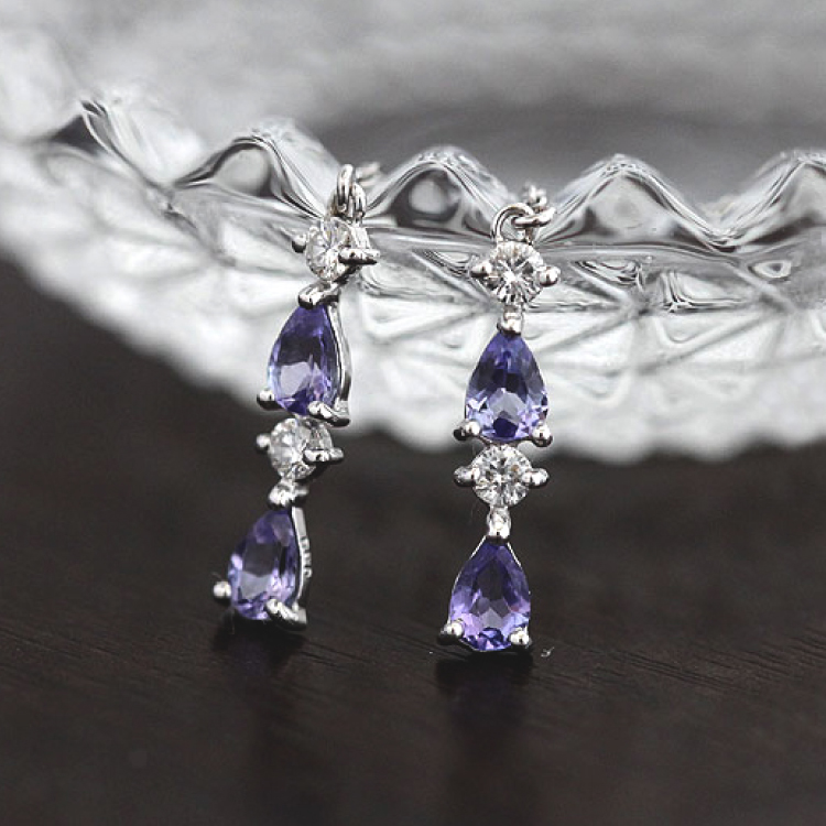 透明感あるペアシェイプのタンザナイト4石と、キラキラ輝くダイヤモンド4石 約0.16ctが、