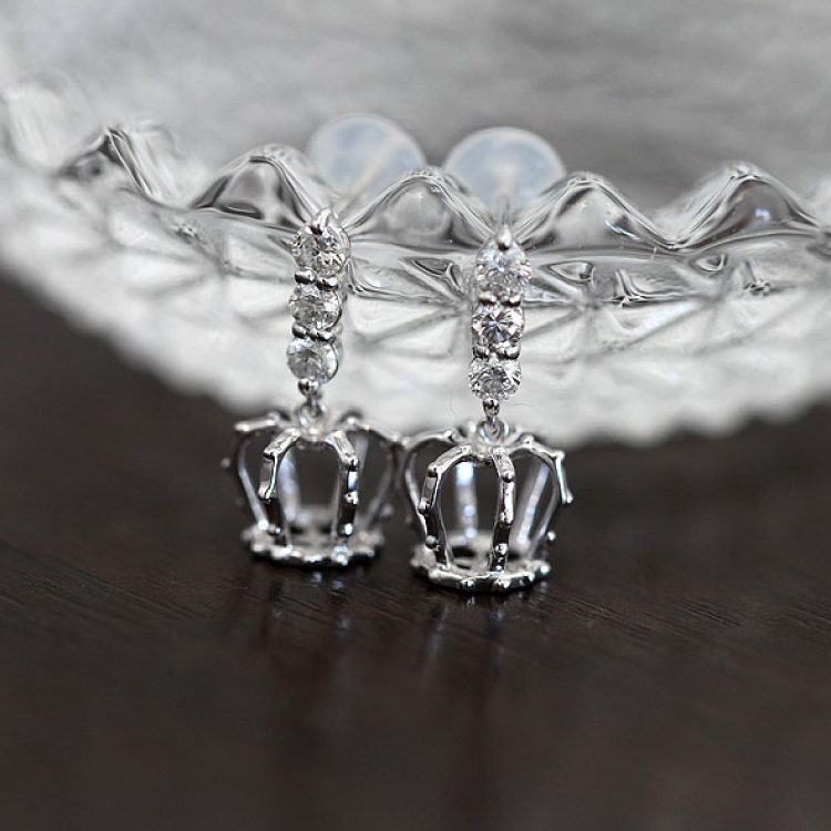 立体的な王冠モチーフが揺れるダイヤモンドピアス