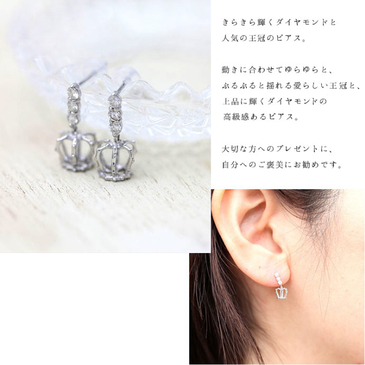 ピアス スタッドピアス プラチナ PT900 ダイヤモンド 0.24ct 王冠 クラウン モチーフ 揺れるピアス レディース アクセサリー アクセ ジュエリー 【f092-pt】 [オーダーメイドジュエリーメイ 山梨県 韮崎市 20745205]