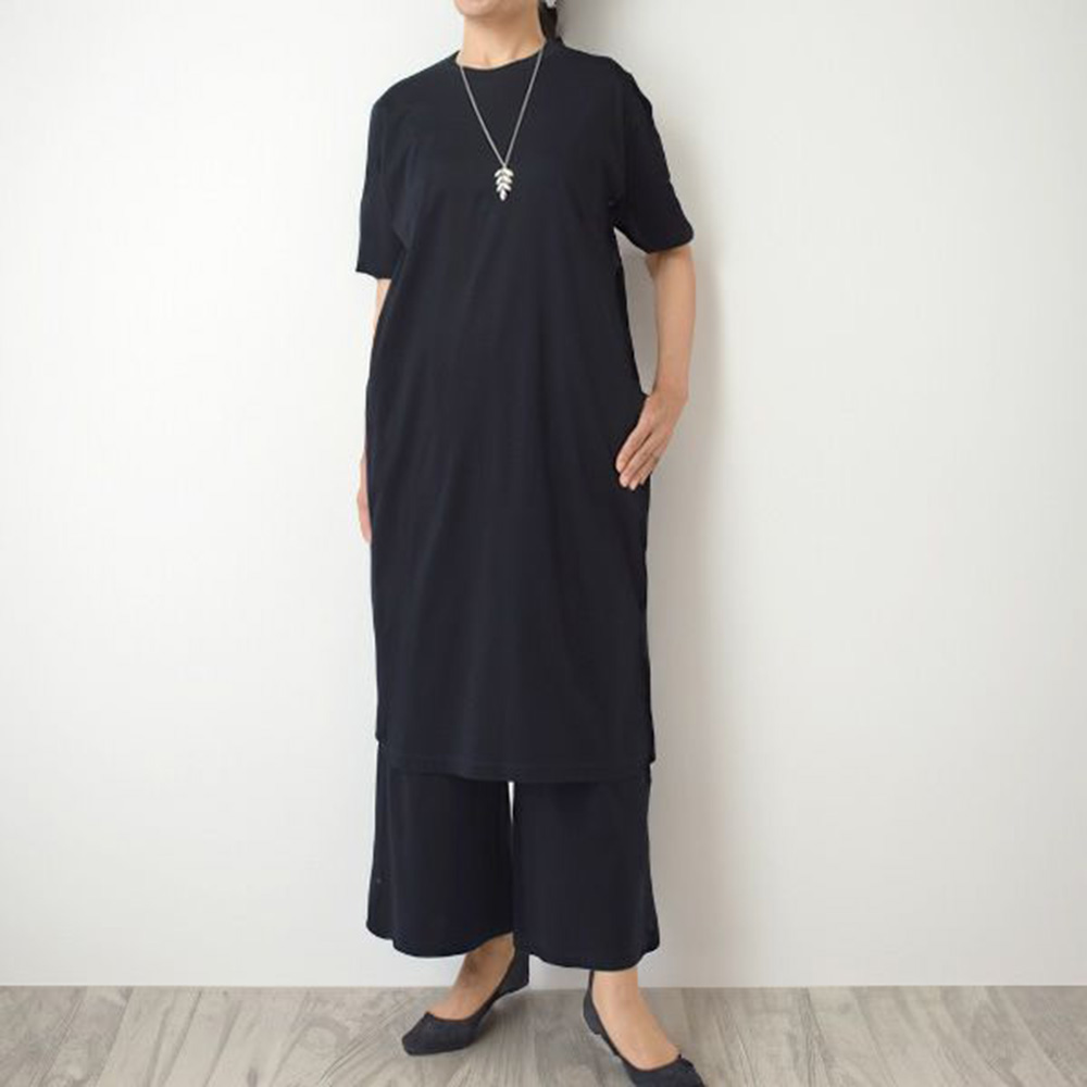 nayuta ナユタ オーガニックコットン Tライン ワンピース 柔らかい なめらかな 上品 リラックス カジュアル 半袖 大人 サイドスリット おうち 部屋着