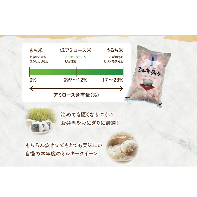 ※ミルキークイーンは、掲載されている袋と、実際に送られる袋のデザインが異なります。お米の品質は同じものです。