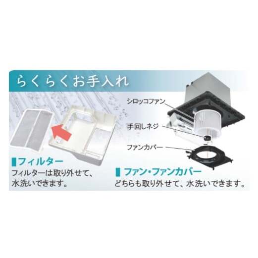 さらに電動ルーバーを採用したことにより送風方向が選べるため浴室内に均等に風を行きわたすことが出来、効率よく換気させることが出来るほか、人感センサーを搭載しているので人を検知して作動させることも可能です。