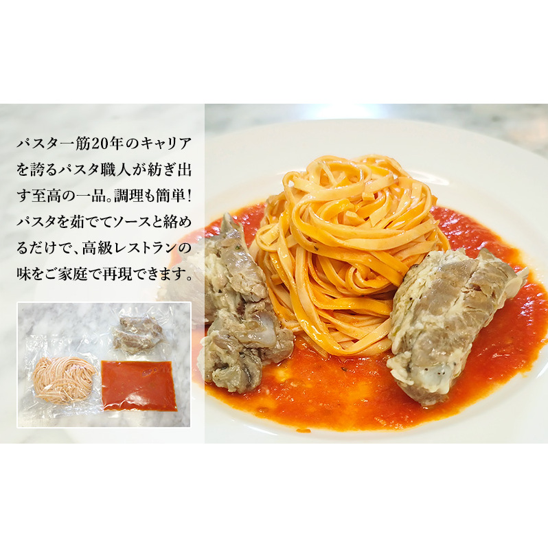 パスタ一筋20年のキャリアを誇るパスタ職人が紡ぎ出す至高の一品。プレミアム生パスタ&スペアリブとトマトソースのセット