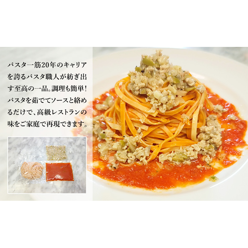 パスタ一筋20年のキャリアを誇るパスタ職人が紡ぎ出す至高の一品。プレミアム生パスタ&鶏ひき肉とトマトソースのセット