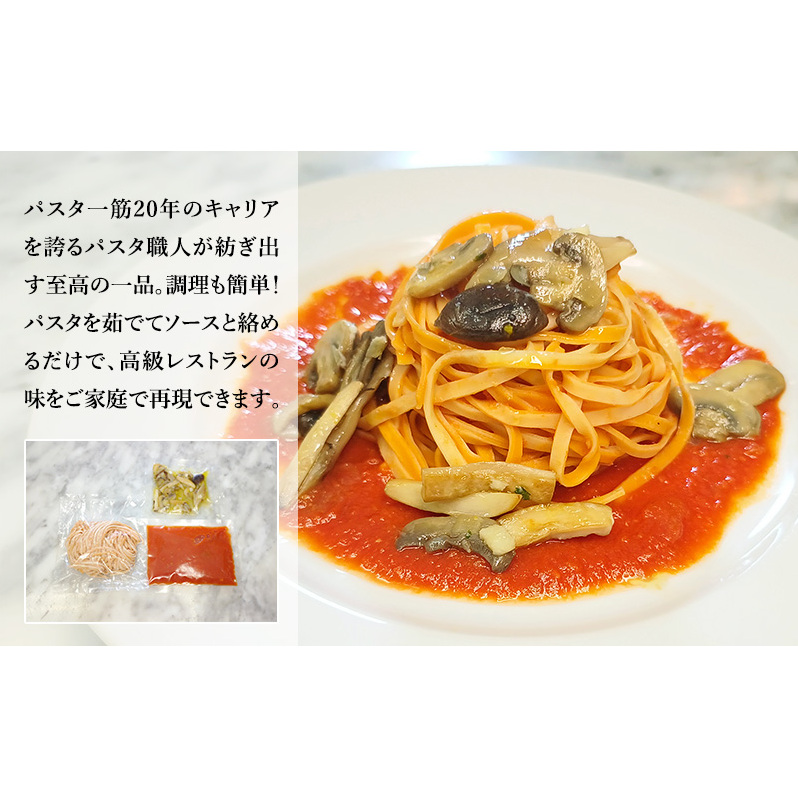 パスタ一筋20年のキャリアを誇るパスタ職人が紡ぎ出す至高の一品。プレミアム生パスタ&4種のキノコのトマトソースセット