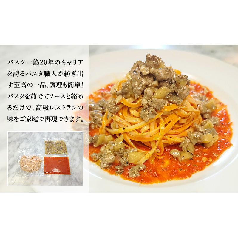 パスタ一筋20年のキャリアを誇るパスタ職人が紡ぎ出す至高の一品、プレミアム生パスタ&リンゴとひき肉のトマトソースセット