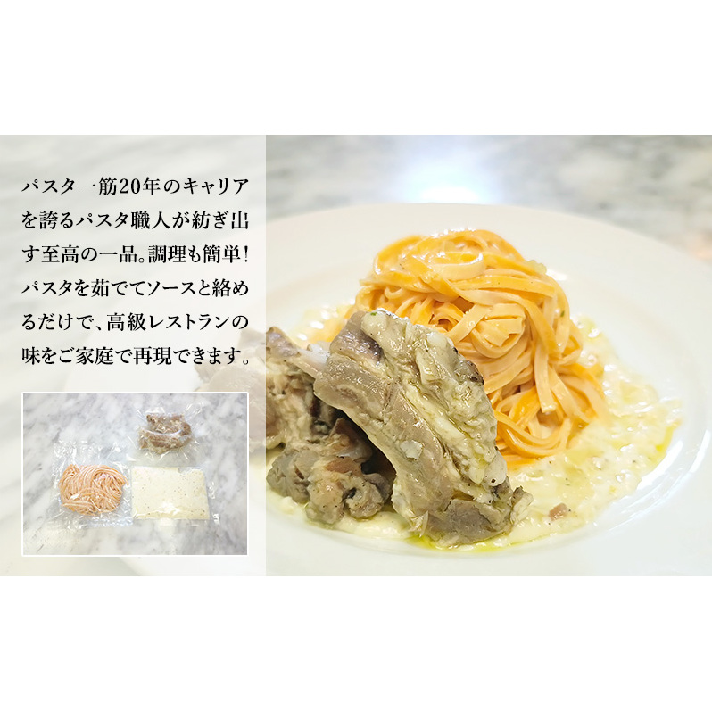 パスタ一筋20年のキャリアを誇るパスタ職人が紡ぎ出す至高の一品。プレミアム生パスタ&スペアリブとホワイトソースのセット