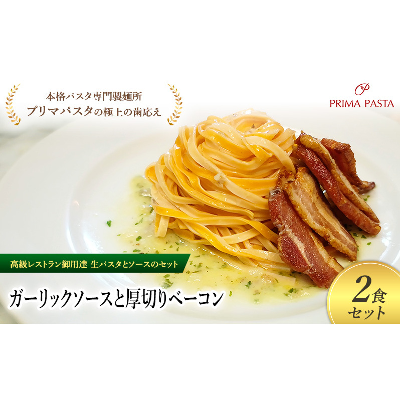パスタ 高級レストラン御用達の生パスタとソースのセット「ガーリックソースと厚切りベーコン  2食セット」 ~本格パスタ専門製麺所「プリマパスタ」の極上の歯ごたえ~ 【GL-AGB1101-2】