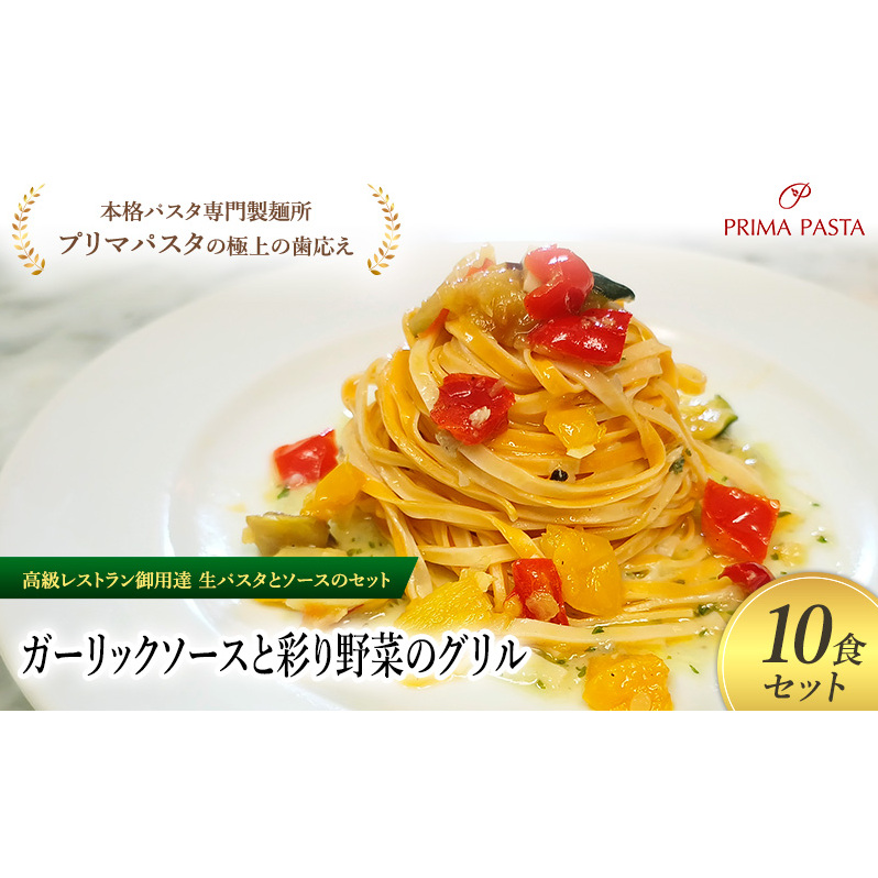 パスタ 高級レストラン御用達の生パスタとソースのセット「ガーリックソースと彩り野菜のグリル 10食セット」 ~本格パスタ専門製麺所「プリマパスタ」の極上の歯ごたえ~ 【GL-GYS1101-10】