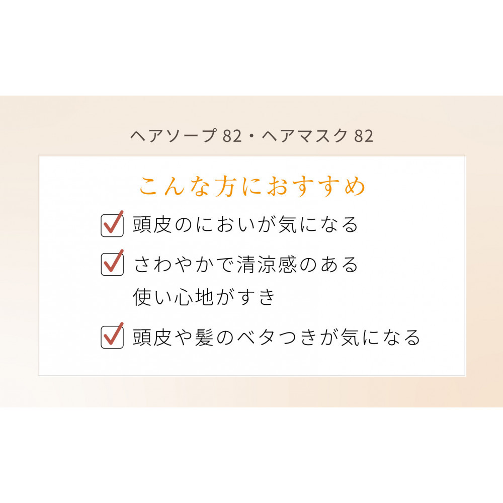 | 全成分 | ヘアソープ82 水、オレフィン(C14-16)スルホン酸Na、加水分解水添デンプン、ココイルサルコシンNa、ラウラミドプロピルベタイン、コカミドメチルMEA、セイヨウハッカ油、ベルガモット果実油、ティーツリー葉油、ジャスミン油、サトウキビ液汁エキス、チャ葉エキス、メドウフォーム-δ-ラクトン、ワサビノキ種子エキス、ジヒドロキシプロピルアルギニンHCl、クコ果実エキス、ムラサキバレンギクエキス、ムクロジ果皮エキス、サボンソウ葉エキス、ゴボウ根エキス、ホホバ種子油、ヒマワリ種子油、BG、グリセリン、ポリクオタニウム-10、クエン酸、ヤシ脂肪酸TEA、ココアンホ酢酸Na、ココイルアラニンTEA、ココイルグルタミン酸TEA、PEG-2カプリリルアミン、PEG-20ソルビタンココエート、塩化Na、カラメル、トコフェロール、エタノール、フェノキシエタノール、香料 *はオーガニック植物成分です。 ヘアマスク82 水、セタノール、ベヘントリモニウムクロリド、BG、ステアリン酸グリセリル、ジメチコン、イソプロパノール、(アモジメチコン/モルホリノメチルシルセスキオキサン)コポリマー、セイヨウハッカ油、ベルガモット果実油、ティーツリー葉油、ジャスミン油、サトウキビ液汁エキス、チャ葉エキス、メドウフォーム-δ-ラクトン、ワサビノキ種子エキス、ジヒドロキシプロピルアルギニンHCl、セイヨウハッカ葉エキス、ムラサキバレンギクエキス、ホップエキス、サボンソウ葉エキス、タチジャコウソウ花/葉/茎エキス、クチナシ果実エキス、ツバキ種子油、オリーブ果実油、グリセリン、グアーヒドロキシプロピルトリモニウムクロリド、アモジメチコン、トリデセス-10、ステアルトリモニウムクロリド、ジステアリルジモニウムクロリド、乳酸、酢酸、トコフェロール、カラメル、エタノール、フェノキシエタノール、香料 *はオーガニック植物成分です。 |
