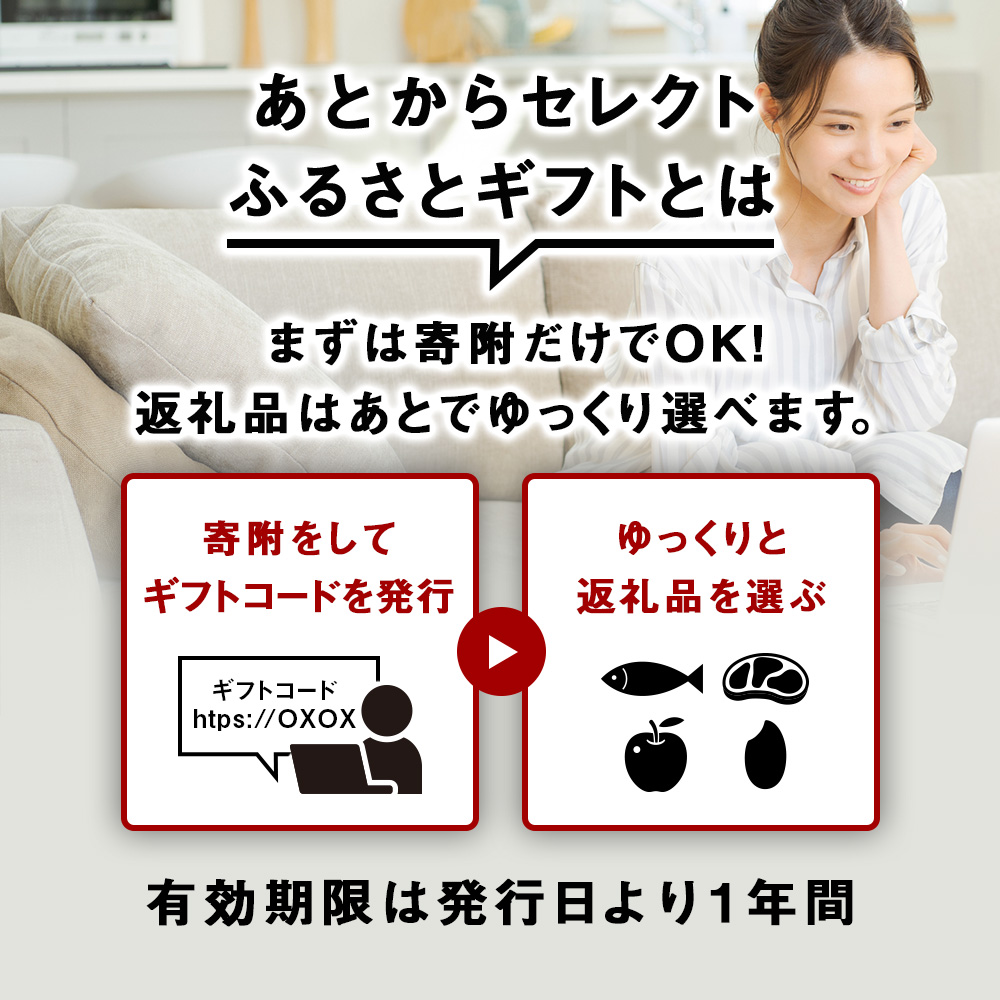 1.あとからセレクト【ふるさとギフト】をお申込み後、ギフトコードとギフトサイトのURLが記載された書面が届きます。