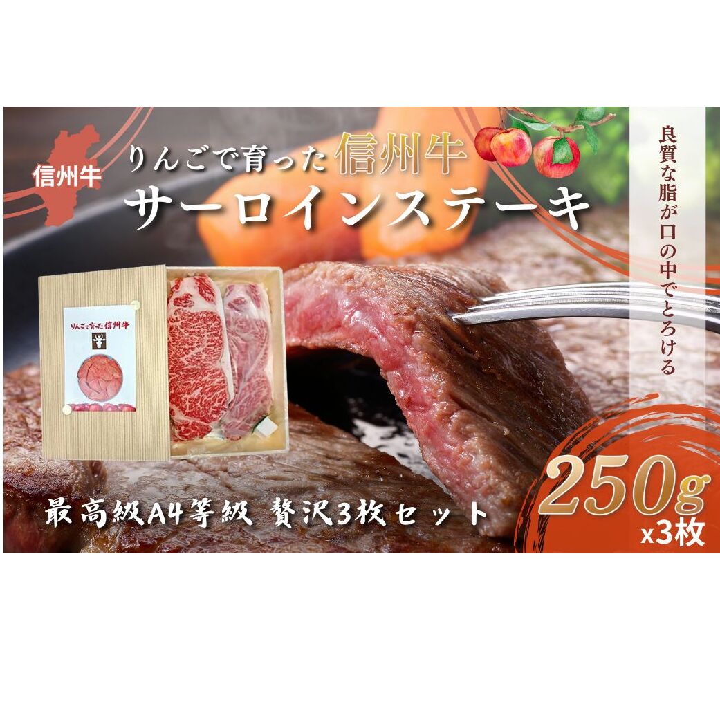 【りんごで育った信州牛】ステーキ用3枚入り【 牛肉 信州牛 サーロインステーキ 黒毛和牛 A4 サーロイン ステーキ 肉 お肉 牛 和牛 焼肉 焼き肉 BBQ バーベキュー ギフト 冷蔵 長野県 長野 】