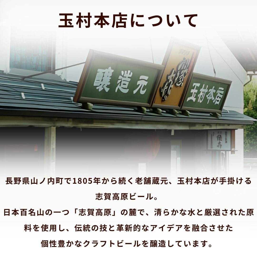 「自分たちが飲みたいビール」というコンセプトで、全商品が志賀高原の湧水を仕込み水に、厳選された麦芽、ホップ、自家栽培米の美山錦等を原材料に、手作りしたクラフトビールです。熱処理や濾過をしていない、酵母が生きた新鮮なビールをクール便でお届けいたします。