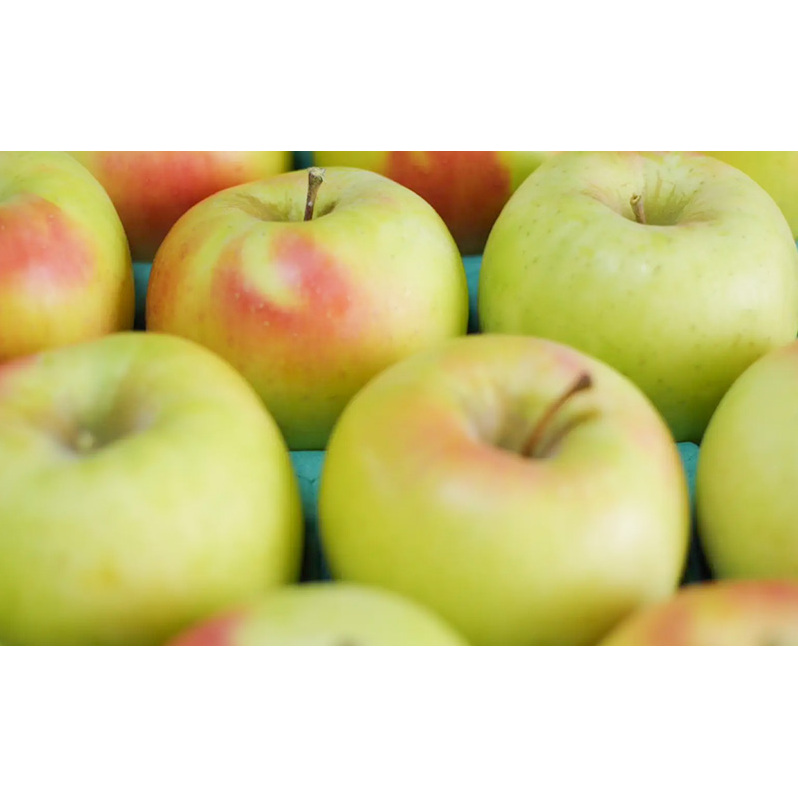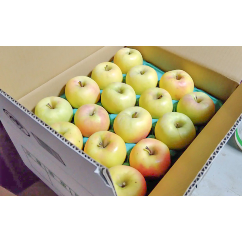 黄色(黄緑色)の地にお日様に当たった個所がピンクに色づくかわいらしい見た目が特徴です。甘味がとても強く酸味が弱いためりんごの酸味が苦手な方にも好まれます。果汁が豊富で歯ざわり舌ざわりがよく蜜も入ります。長い期間変わらず、美味しく召し上がれる日持ちの良い人気品種です。