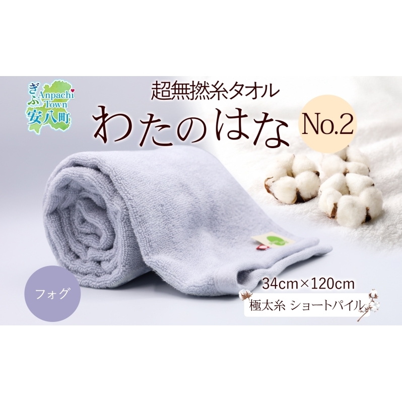 超無撚糸 タオル わたのはな No.2 フォグ 約34×120cm 五分咲き 極太糸 ショートパイル むねんし 雑貨 日用品 パイル 日本製 綿100% 柔らか 軽い ボリューム 吸水 風合い ハーフバスタオル プレゼント ギフト 贈り物 浅野撚糸 送料無料 岐阜県 安八町
