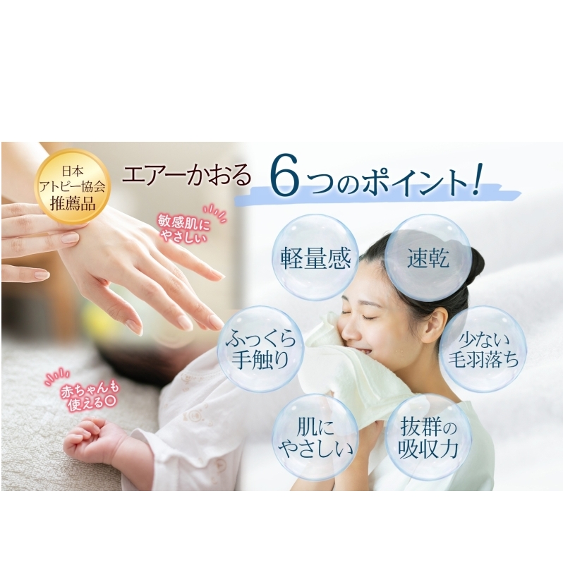 日本アトピー協会推薦商品なので、お肌にやさしいタオルです。