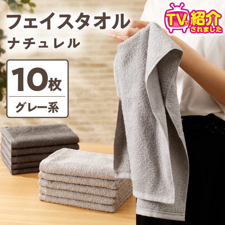 【TVで紹介!】ナチュレル 贅沢フェイスタオル 10枚(グレー系)【泉州タオル 国産 吸水 普段使い 無地 シンプル 日用品 家族 ファミリー】 010B666