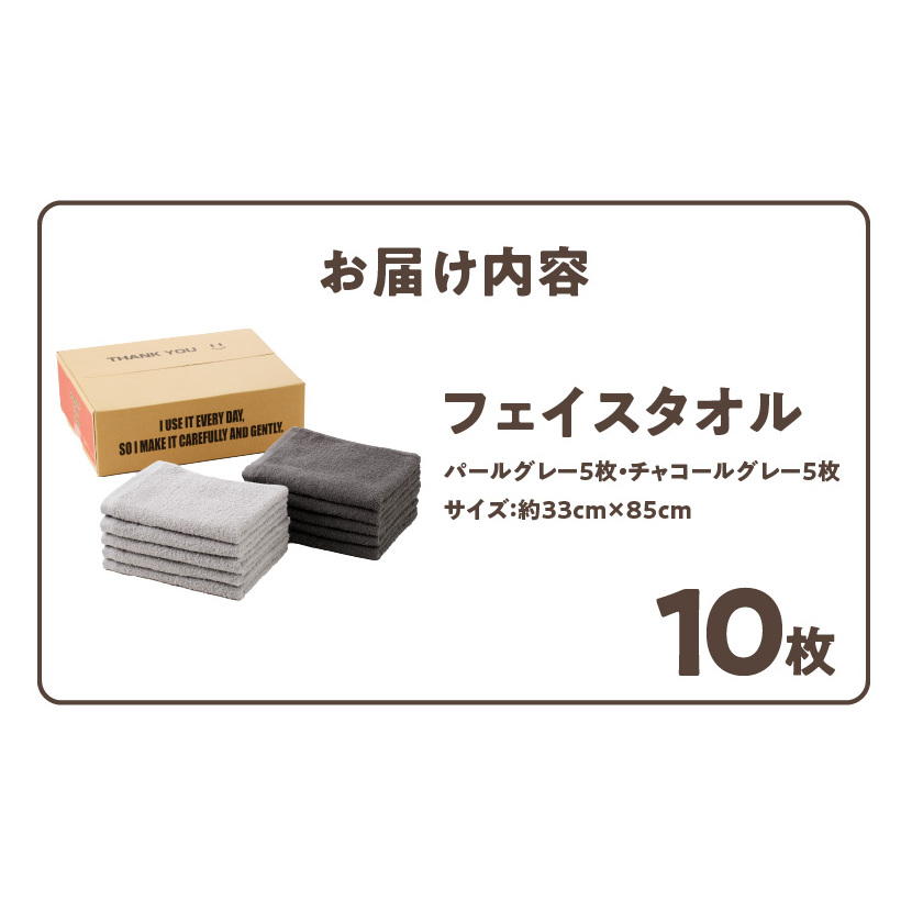 ・フェイスタオル 10枚(パールグレー5枚・チャコールグレー5枚)