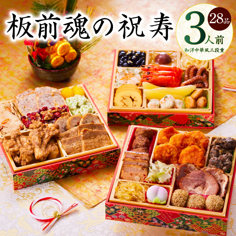 おせち「板前魂の祝寿」和洋中華風 三段重 28品 3人前 6.8寸【おせち おせち料理 板前魂おせち おせち2026 おせち料理2026 冷凍おせち 贅沢おせち 先行予約おせち 年内発送】 Y103
