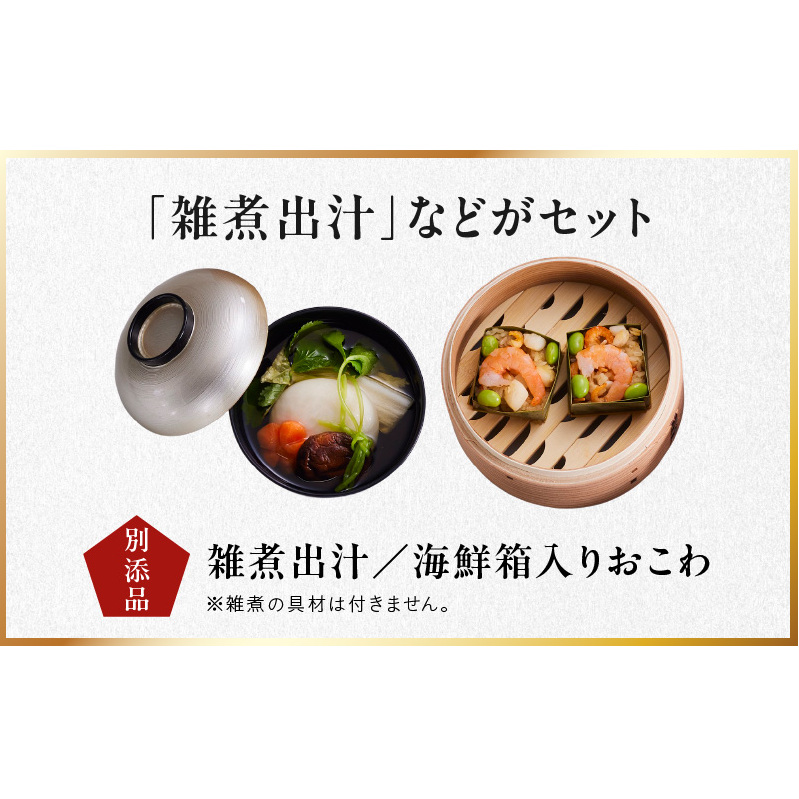 海鮮箱入りおこわ 2個、雑煮出汁 1袋
