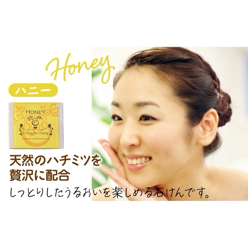 天然のハチミツを贅沢に配合した、しっとりとしたうるおいを楽しめる石けんです。泉佐野市の無添加石けん専門店「オラン・ク・オラン」の石けんです。多くの方にお試しいただけるよう期間限定の寄附金額でご提供させていただきます。