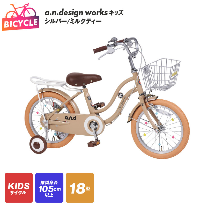a.n.design works キッズ 18 シルバー/ミルクティー【自転車 完成品 組み立て不要 アウトドア サイクリング じてんしゃ 通勤 通学 新生活】 099X242