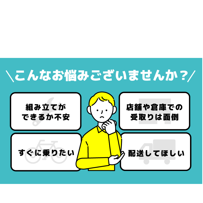 ・流通形態の都合上、点検等は付帯されておりません。また、お届け後の修理等についてはお近くの自転車取扱店またはご自身でお願いしております。