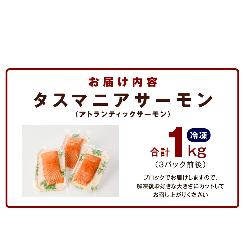 タスマニアサーモン 1kg【アトランティクサーモン 真空パック 小分け ブロック 訳あり サイズ不揃い 上質 刺身 海鮮丼 サラダ 冷凍 物価高応援】 G1865
