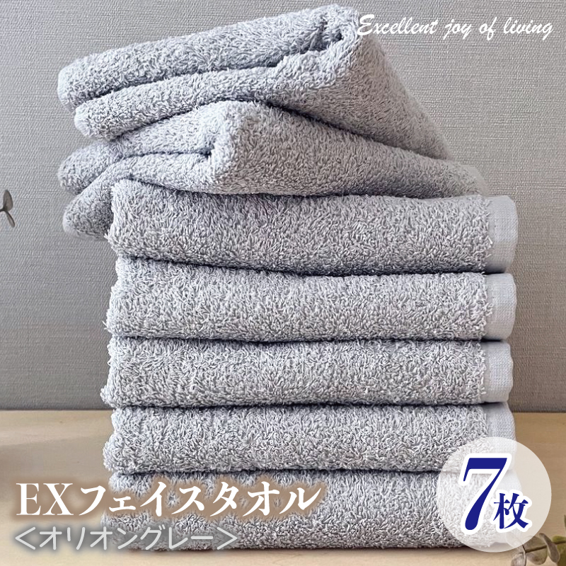 泉州タオル EXフェイスタオル7枚セット(オリオングレー)【泉州タオル 国産 吸水 普段使い 無地 シンプル 日用品 家族 ファミリー】 099H3640