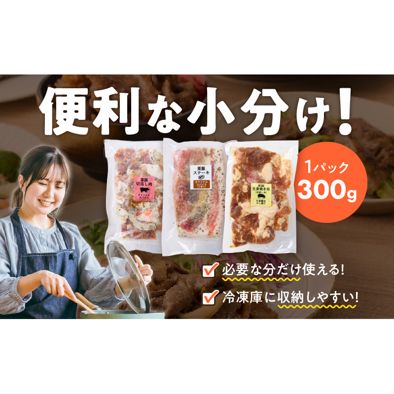 栗豚 3種セット 合計 2.7kg(ステーキ/切り落とし/生姜焼き用)【オリジナルスパイス仕込み 豚肉 小分け 盛り合わせ 食べ比べ 焼くだけ】 G3375