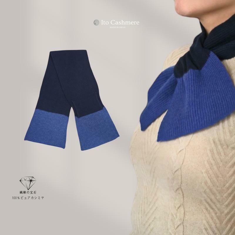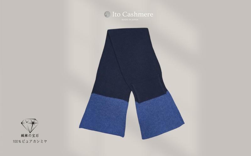 カシミヤ・マフラー 1枚(ダークネイビー&ブルー)
