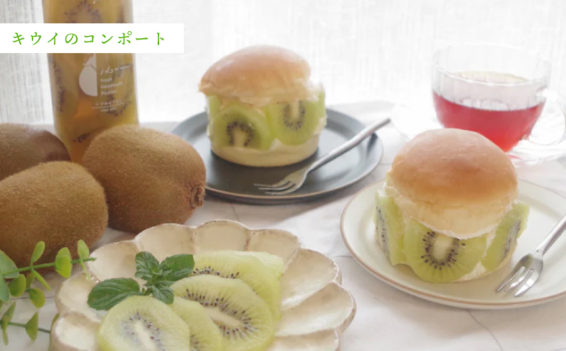 キウイのコンポート、6種フルーツのコンポート、輪切りオレンジのコンポート、グレープフルーツのコンポート、パイナップルのコンポート 各1本 ギフト箱に入れてお届け