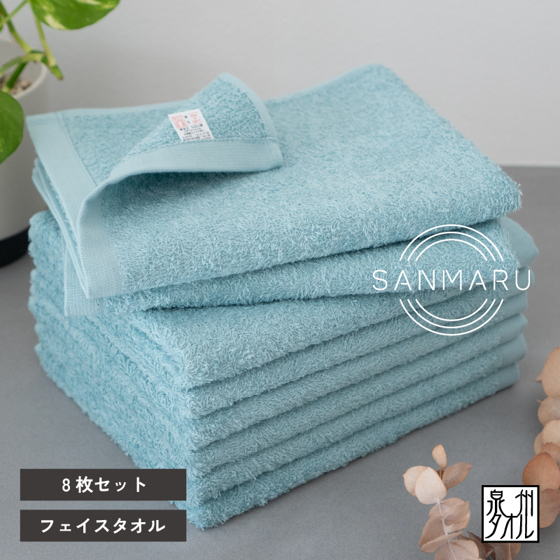 【スピード発送】サンマルフェイスタオル ブルー 8枚 G2259